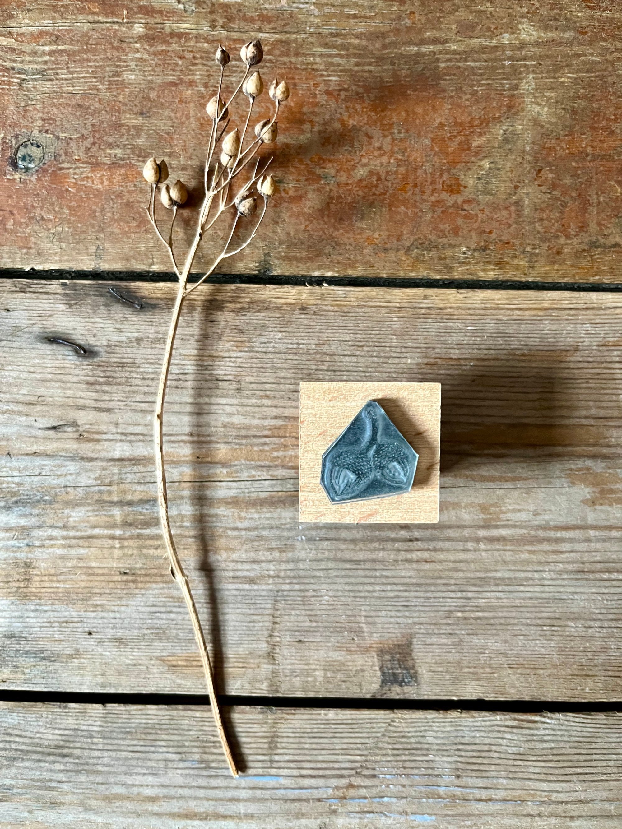 An adorable traditional rubber stamp featuring my original illustration 'Acorn' made by the wonderful English Stamp Company
