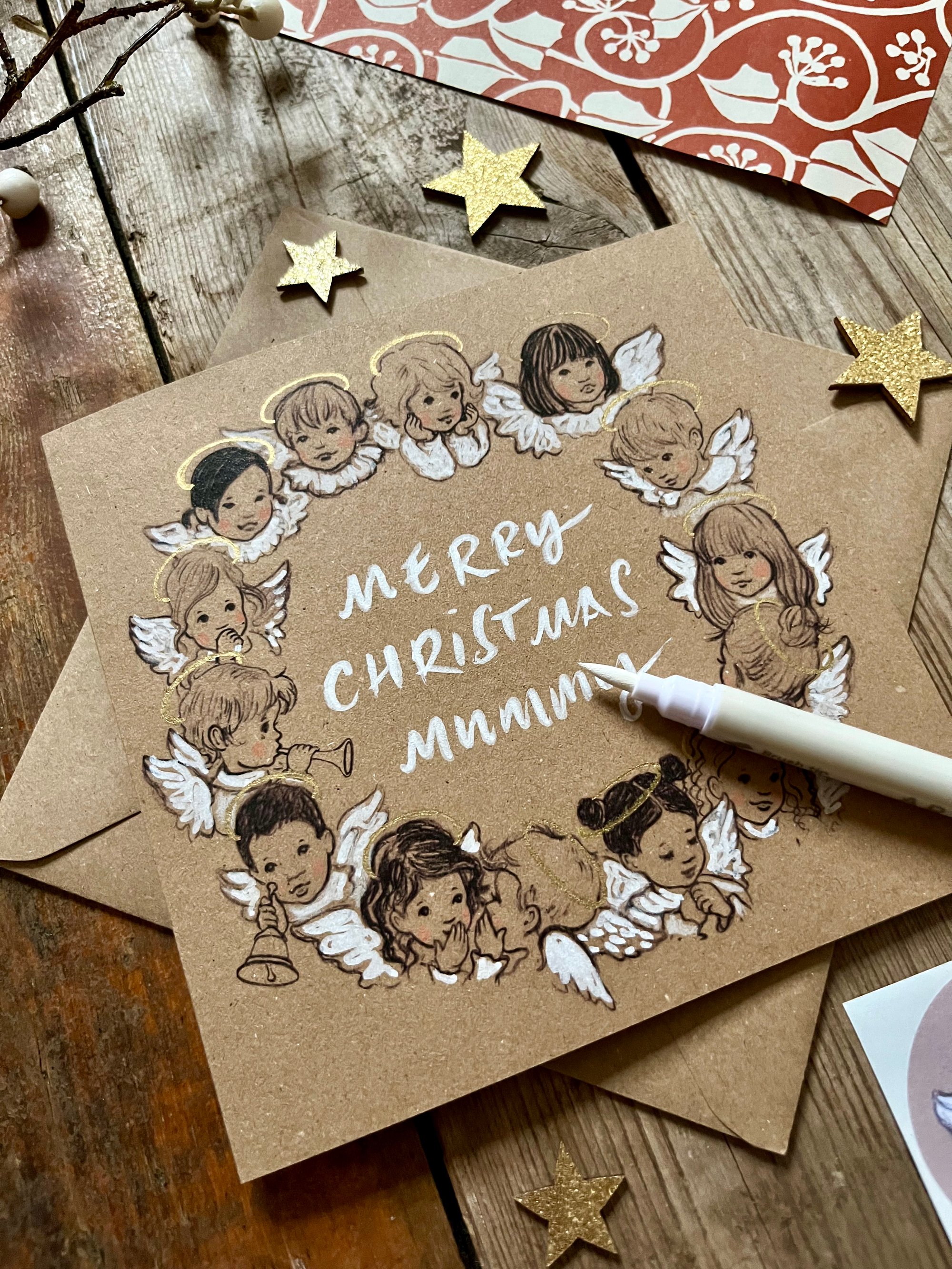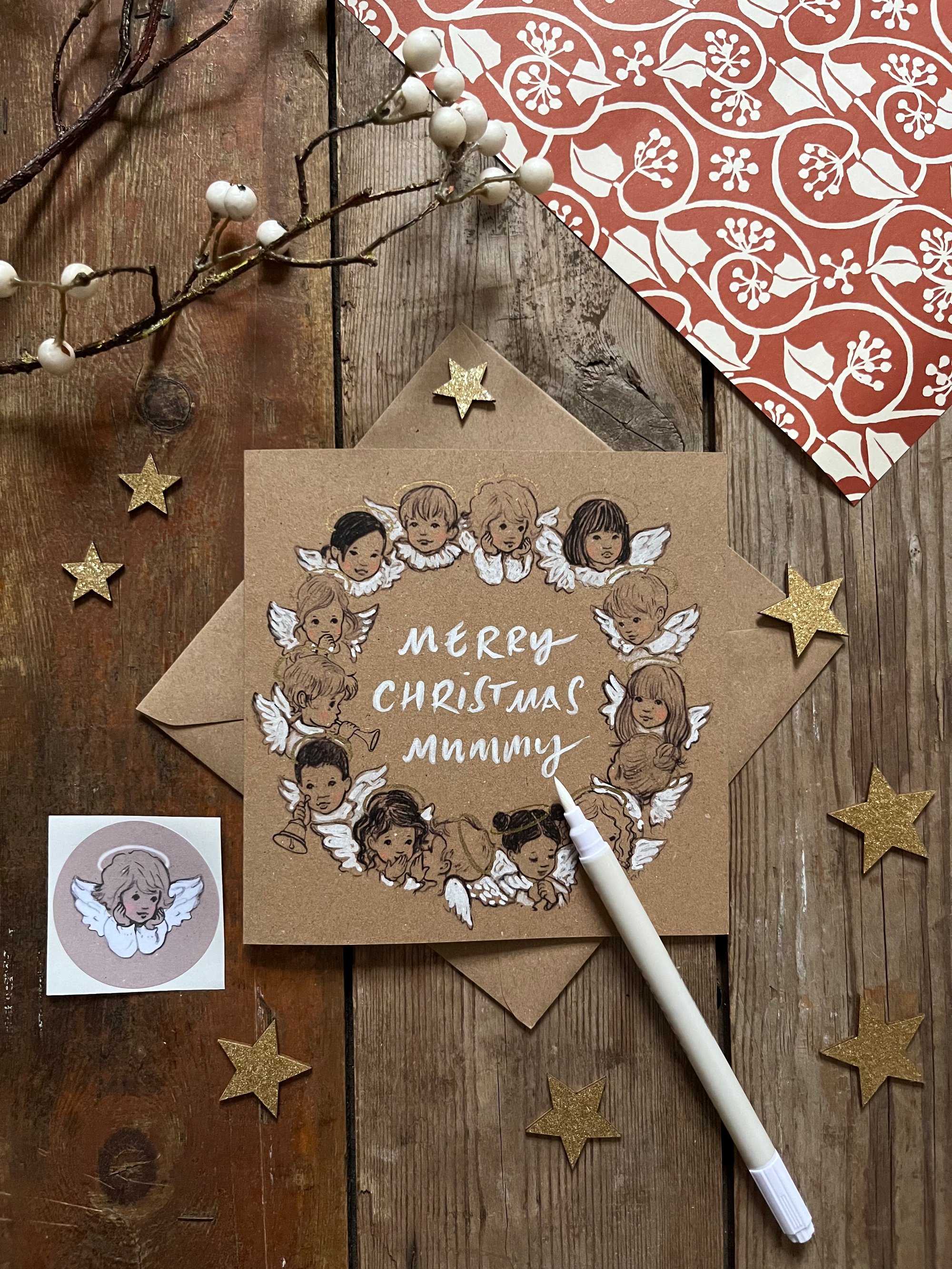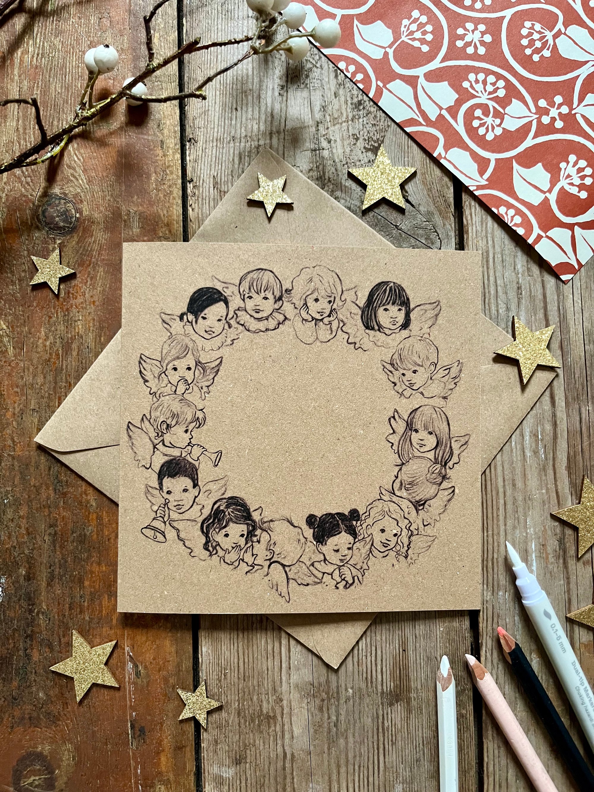 A beautifully printed Christmas Greeting card featuring my original illustration 'Chorus of Angels'
