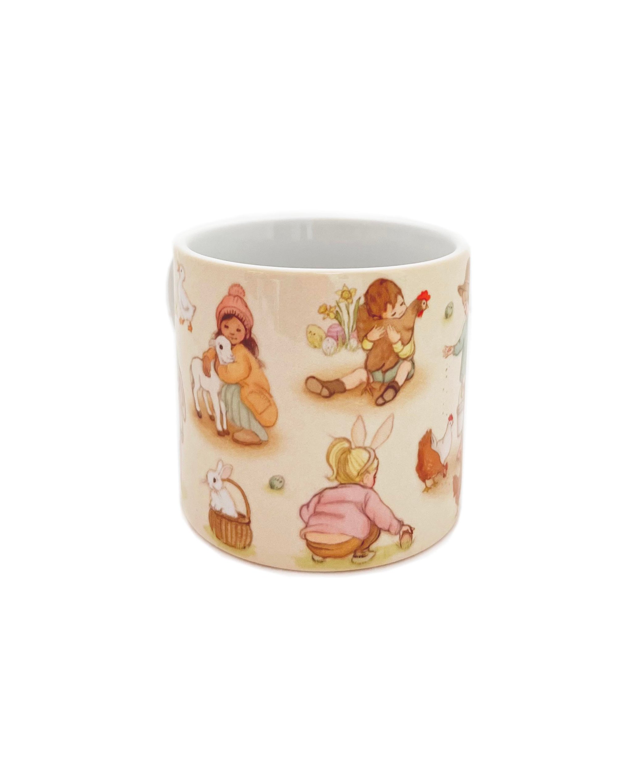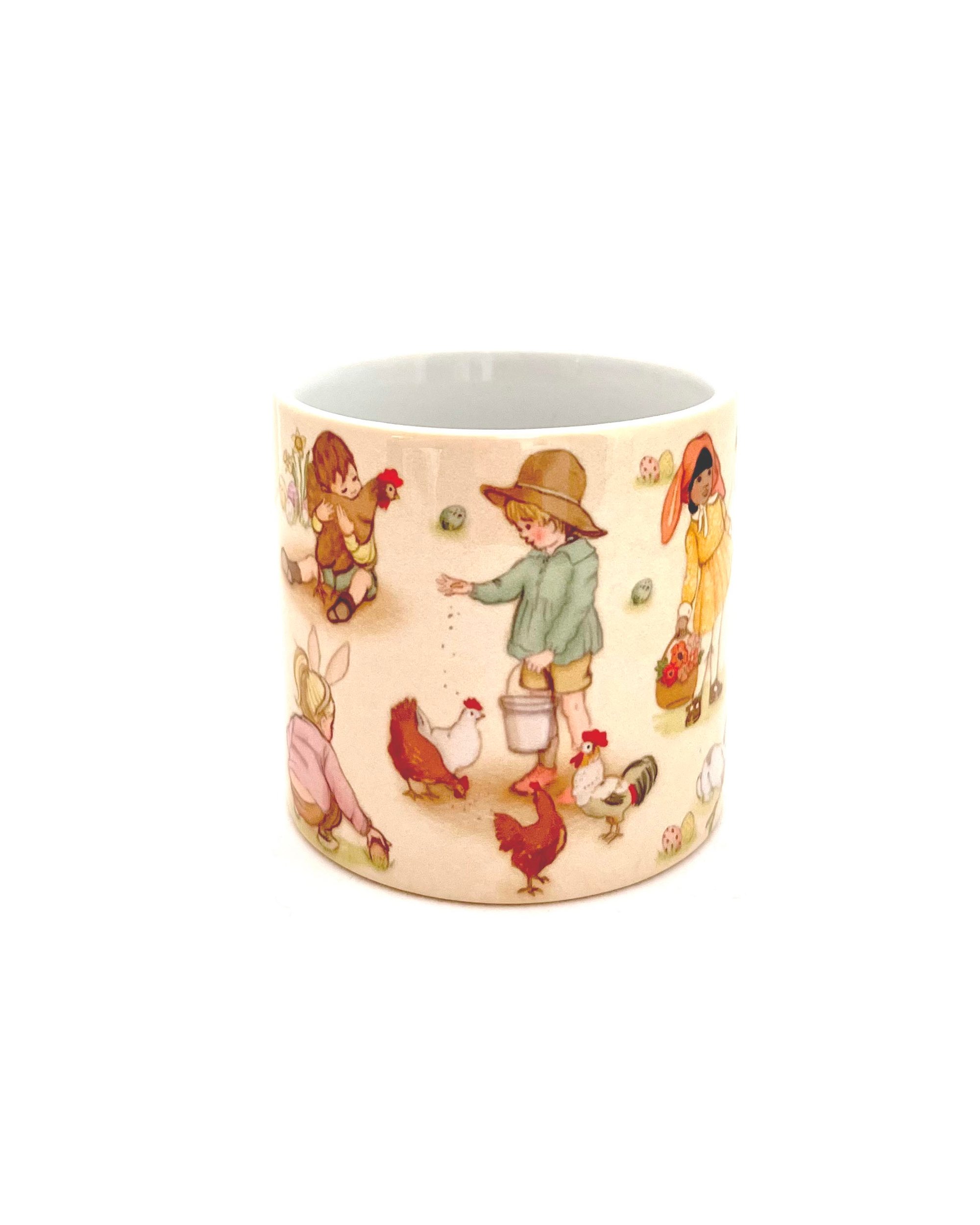 I adore these small ceramic mugs, featuring a wrap design of my original illustration 'Easter Day'