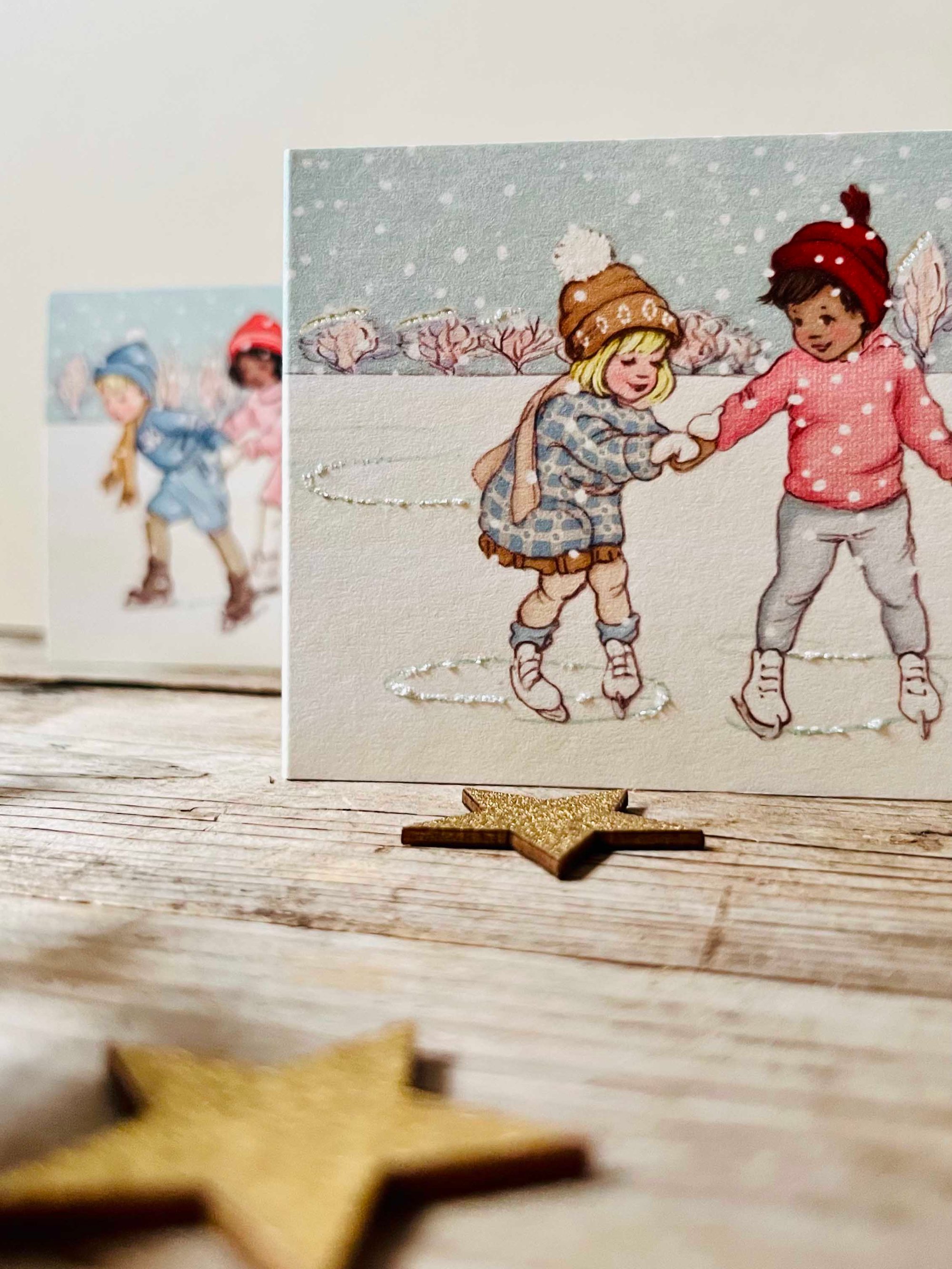 A beautifully printed Concertina Christmas card featuring my original illustration 'Skating Friends'