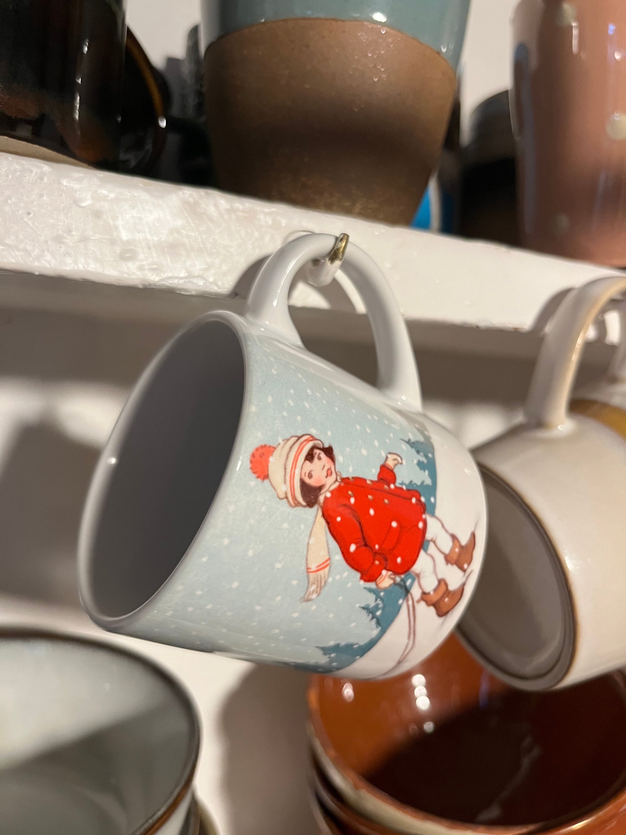 I adore these small ceramic mugs, featuring my original illustration 'Sledge Day' printed on both sides, the perfect size for a child's cosy hot chocolate or a grown up espresso!