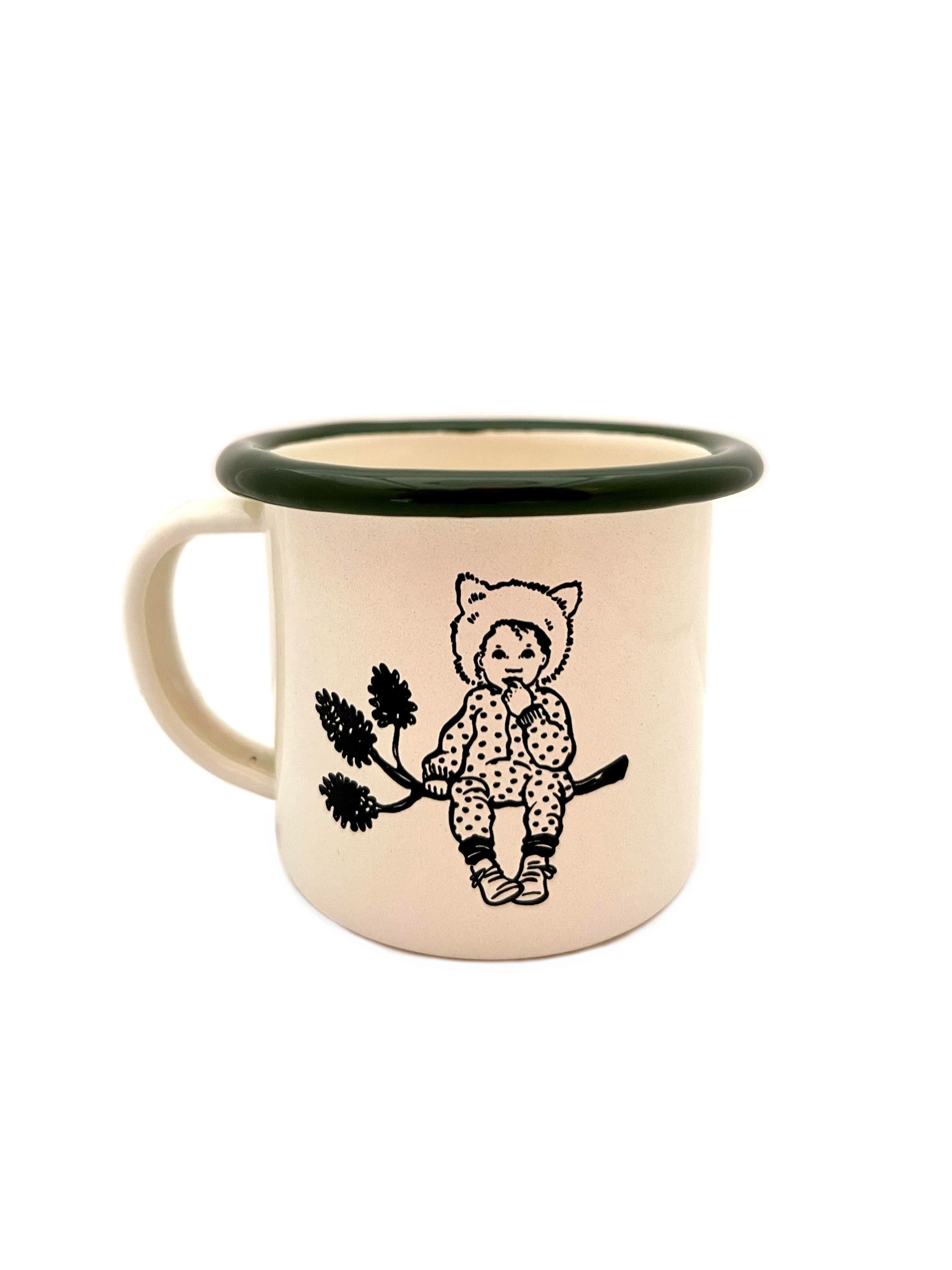 A mini enamel mug featuring my original illustration 'Wolf Pixie'